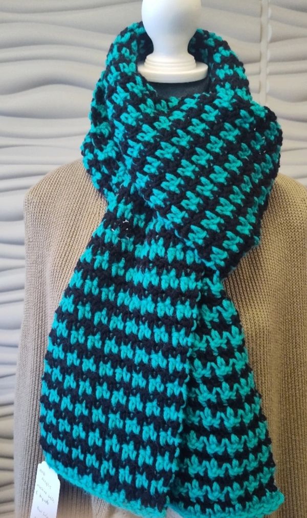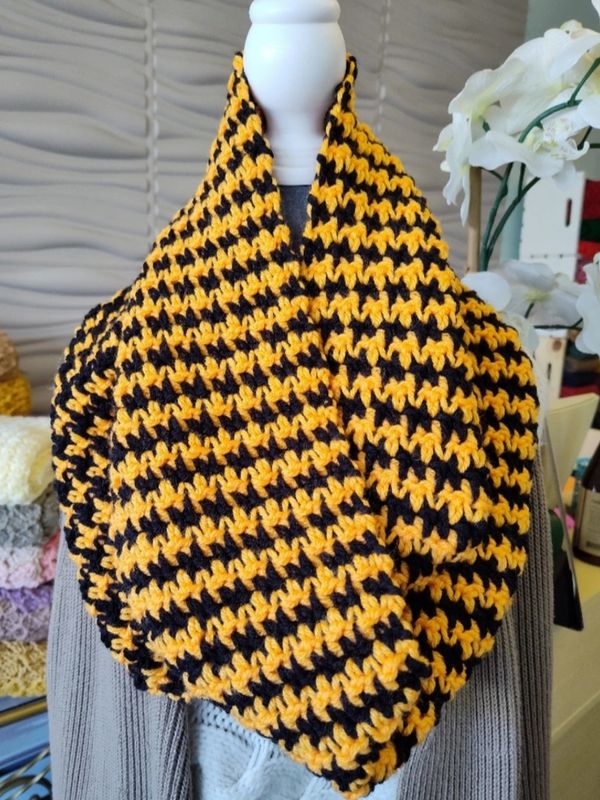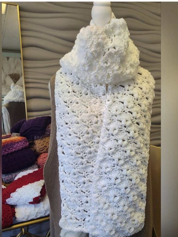 The owner is also a crochet artist who sells her handmade goods in the salon.